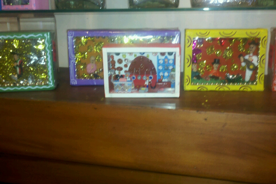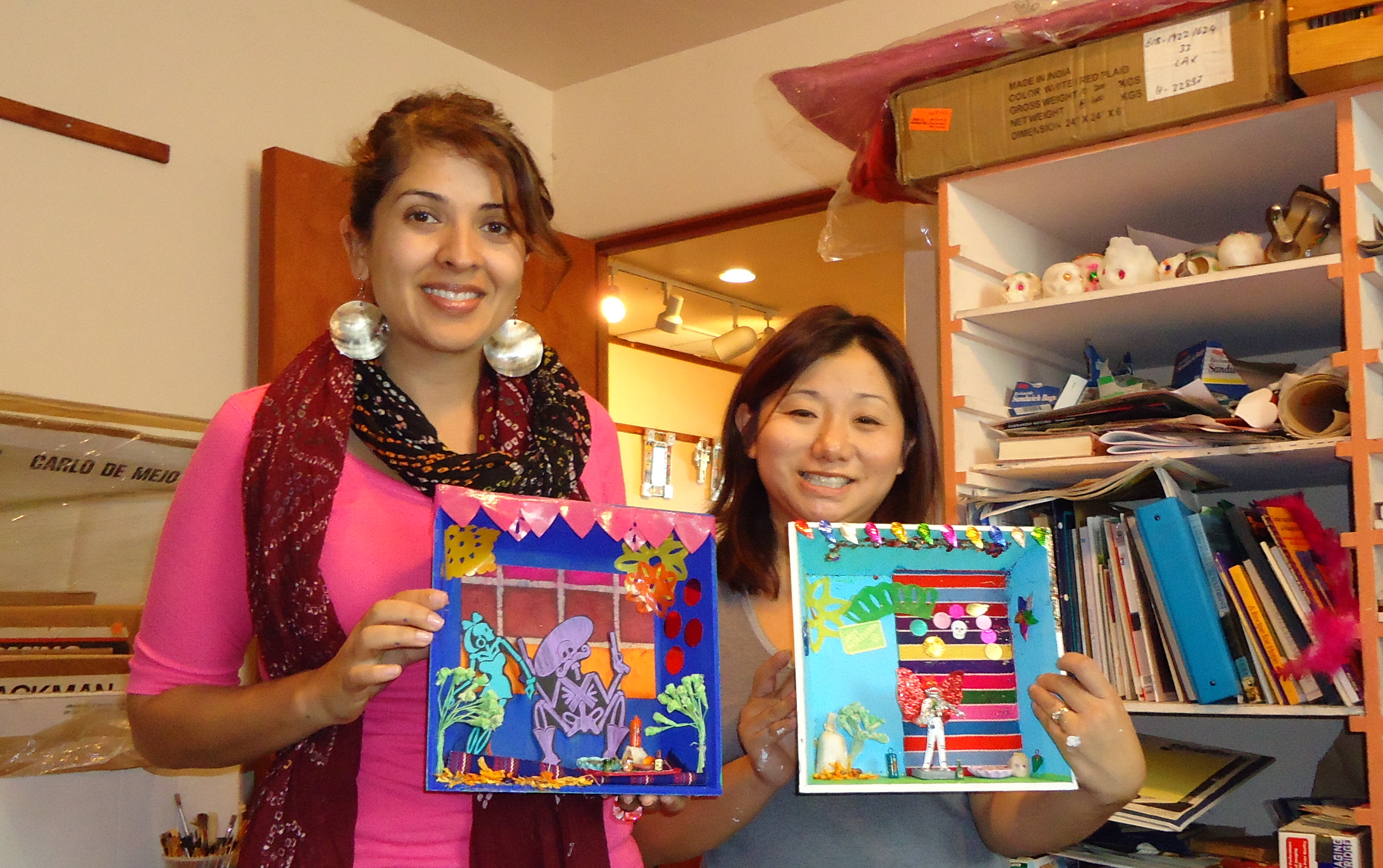 Yesterday, I took an Altar making workshop at the shop called Back from Tomboctou with my friend Sukhjit. It was a crafty day for both of us.  I was excited to find out about these workshops. I have been a collector of Dia de los Muertos (Day of the Dead) ofrendas for years,  always picking up a couple from my travels to Mexico. To my surprise Back from Tomboctou has been on Adams Avenue for over 20 years. The owners Claudio and Mirabel have been selling their folk art treasures for over 30 years.