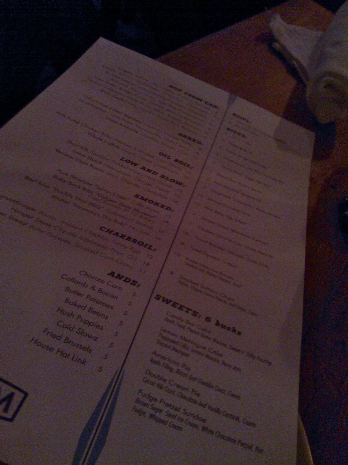 I went back in the evening with a friend and we ate dinner at Gingham. Greeted by a antique carousel horse in the window, the restaurant has a unique decor, part hip saloon/part antique modern (Is there such a thing? ). There were a pair of cow skeleton chairs with a sign that says “Keep Gate Closed! Horses and Cattle Grazing.” The menu was sort of like a riddle, oil boil instead of fried, smoked, not canned…you get the idea. The menu is mostly a la carte, but the creativity shines through and when you get the food. I am no food critic, but it is good and the servers are attentive. I am all for specialty cocktails which I need to return to try (they only had beer and wine that night). I was thouroughly surprised of the night vibe. There was music at the bars and people of all ages around at 8 pm at night. Not quite the newest hip place in San Diego, but cool nevertheless. So with that said, venture out and enjoy the old school charm of La Mesa Village, you’ll be glad you did.