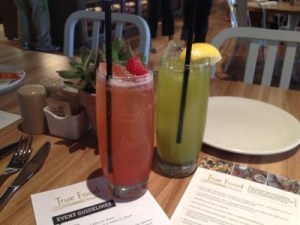 Last week, I had a chance to go to the soft opening of True Food Kitchen at the Fashion Valley Mall. I am not to eat strange named food like kale, edamame and drink strawberry and rhubarb soda but I did. Interestingly enough, the food was good and light. I didn’t feel like I was going to go into a food coma when I left or feel any guilt (like sometimes you do when you go out for a burger and fries). The open kitchen feeling was refreshing. The staff seemed proud to be a part of something good. I missed out in trying Watermelon and Heirloom Tomato salad, to my surprise the recipe is on their website. I guess I could either make it or go back to the restaurant. I think I may go back to True Food Kitchen for this one.
